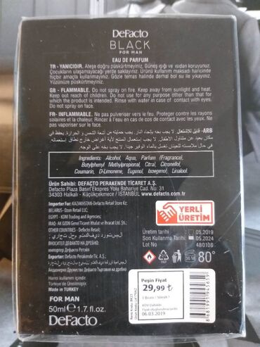 Kişilər üçün ətir “DeFacto-Black” 50 ml, Türkiyədən gətirilmişdir.