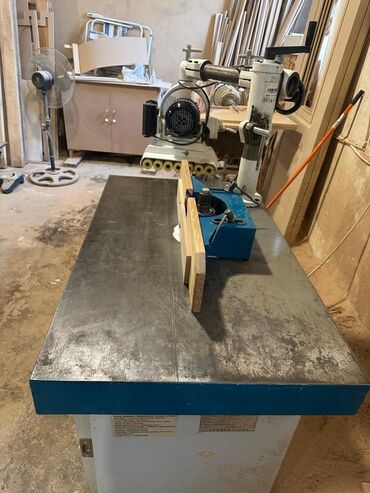 Şəkillərdə gördüyünüz komplekt satılır: əsas dəzgah, yedirmə qurğusu və masa üzərindəki bələdçi/iskana. Specifications plitəsi cihazın üzərindədir.
