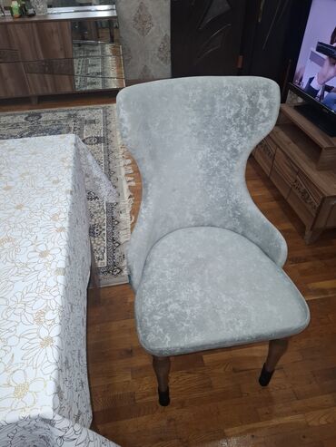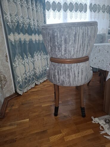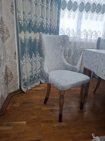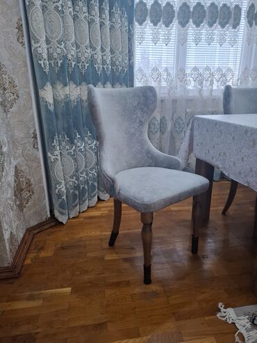 Zərif interyerlərə uyğun, dekorativ arxa hissəsi və taxta detalları ilə ön plana çıxan şık stul.