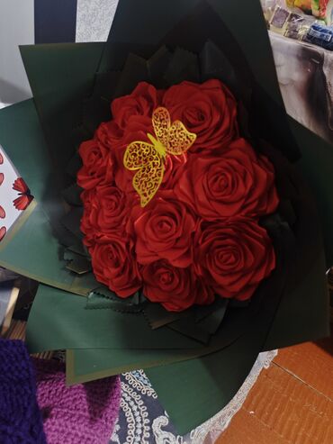 - Material: yüksək keyfiyyətli süni güllər, incə parıltı effektli ləçəklər