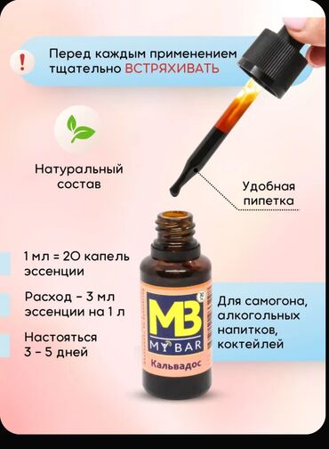 - Təyinat: samogon, alkoqollu içkilər və kokteyllər üçün alma-kalvados ləzzəti və aroması əlavə edən konsentrat.