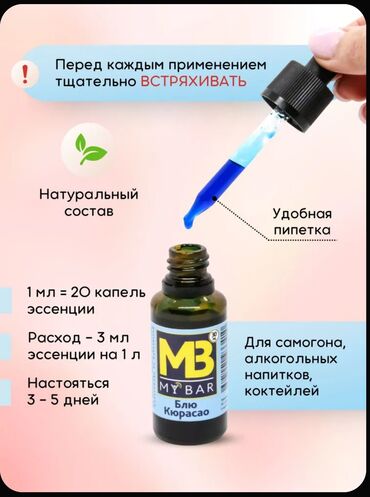 MYBAR “Blue Curaçao” essensiyası – evdə kokteyl və içkilərə parlaq mavi rəng və tropik-sitrus (acı portağal) notları vermək üçün aromatik qatqı.