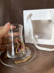 Dekorativ armudu stəkan və nəlbəki. Real stəkan kimi də istifadə olunur. Qutuda suvenir.