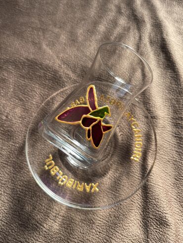Şüşə armudu stəkan və nəlbəki dəsti - Material: şəffaf qalın şüşə - Dizayn: armudu formalı stəkan, qızılı naxışlı 2 halqalı dekor; nəlbəki də qızılı halqalarla uyğunlaşdırılıb - Brend/işarə: “kcd”...