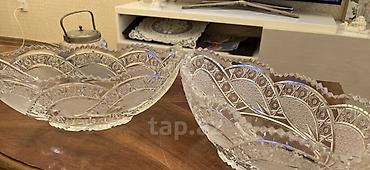 Графин стекло старинный и конфетницы фруктовницы , duz qabılar, melxior aş qaşıqı.СССР б/у недорого. Вотсап