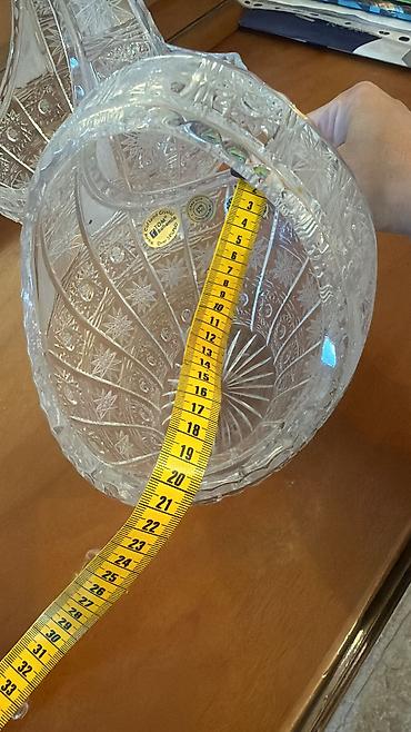 Məhsul: Çexoslovakiya istehsalı əl kəsimi qurğuşun kristal vaza dəsti Təsvir: - Etiket: “Genuine Hand Cut Lead Crystal – Made in Czechoslovakia” - Material: yüksək keyfiyyətli qurğuşun kristalı, d...