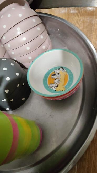 Zərif porselen qab dəsti - Tərkib: 1 böyük salat/servis qabı və bir neçə dərin boşqab - Material: incə porselen - Rəng və naxış: tünd kobalt-mavi fon, mərkəzdə gül təsvirli ağ medalyon; kənarlard...