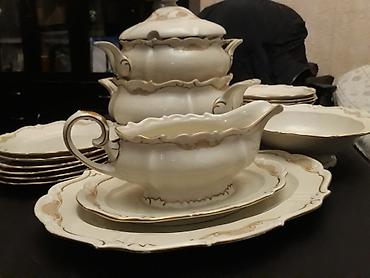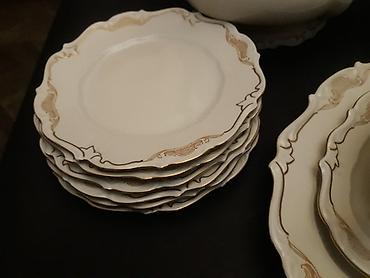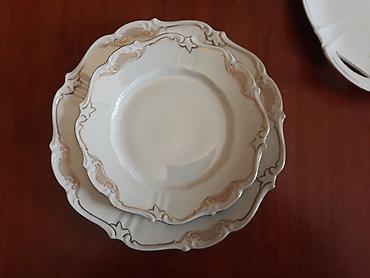 Çiçək naxışlı farfor süfrə dəsti - Material: nazik farfor/porseleyn - Rəng: ağ əsas, çoxrəngli (pastel) güllü naxışlar, kənarlarda incə bozumtul xətkeş - Üslub: klassik/retro, dalğalı kənarlı form...