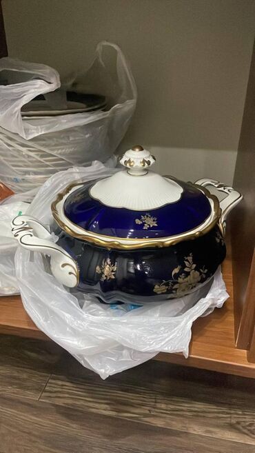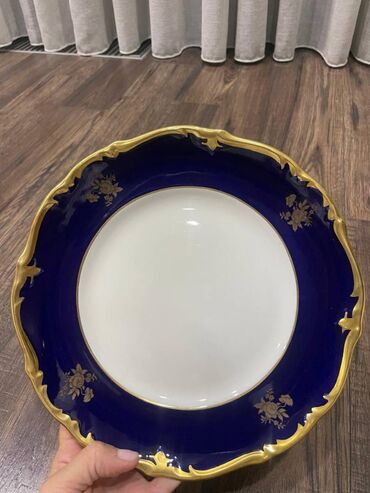 Hamisi birlikde 70 AZN. Çex Respublikası istehsalı olan zərif naxışlı, kobalt rəngli, qızılı ornamentli çini qab dəsti. Dəstə müxtəlif ölçülü boşqablar, kasalar və servis qabları daxildir. Zərif sü...