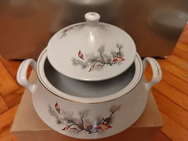 Almaniyanin Kahla 6 neferlik 36 predmet nahar desti. Tezedir, işlenmeyib. 400 man. Unvan Baki.