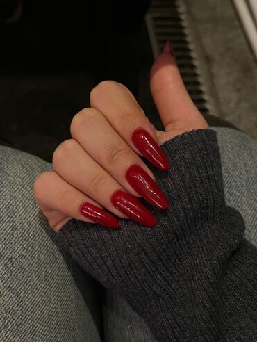 Qırmızı parlaq, iti formalar daxil olmaqla zövqünüzə uyğun forma və rəng seçimi. Düzgün kəsim, dırnaq lövhəsinin hazırlanması və səliqəli örtük ilə uzunmüddətli, parlaq nəticə.