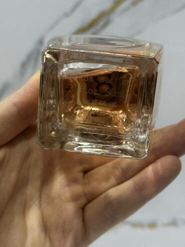 - Şüşə dizaynı: çoxüzlü şəffaf şüşə, çəhrayı-şamı rəngli maye, mat qızılı qapaq