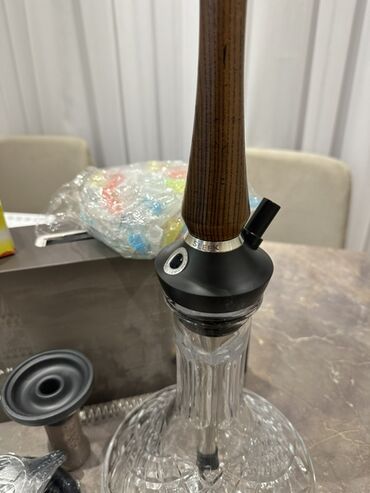 - Şüşə karafalı baza: qalın, naxışlı, şəffaf şüşə, sabitlik və sərin tüstü üçün.