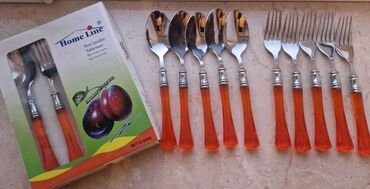 Bənövşəyi rəngli, ağ xallı dəstəkli süfrə bıçaq‑qaşıq‑çəngəl dəsti. Türkiyə istehsalı, AROW firması 75 azn alınıb. Xüsusiyyətlər: - Material: paslanmayan polad başlıq, rəngli plastik sap (bənövşə...