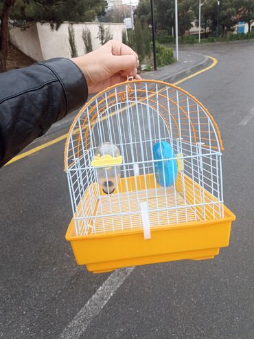 Məhsul: Xamyak qəfəsi • Material: metal barmaqlıqlar və plastik altlıq • Rəng: mavi • Daxili avadanlıq: su qabı/şüşəsi, yemlik, içəridə platforma və kiçik körpü • Daşıma üçün yuxarıda tutaca...