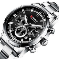 Curren firmasının qol saatı. Gümüşü rəngdə metaldan hazırlanıb. Dairəvi formalı, qara rəngli displeyi var. Kişi qol saatı kimi istifadə üçün idealdır.