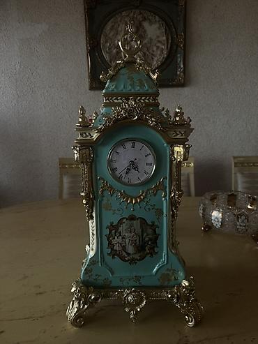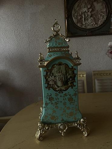 Antika saat - Material: yüksək keyfiyyətli parlaq ağ porselen - Üslub və naxış: qızılı rellef vurğular, əl boyası çiçək kompozisiyaları; korpusda həcmli porselen güllər - Siferblat: qızılı ornamen...
