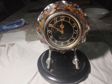 Klassik rəqəmlərUSSR istehsalı olan köhnə mexaniki masa saatı satılır. Tam işlək vəziyyətdədir, mexanizmi problemsiz işləyir. Korpus kristal-şüşə kənarlı dekorla və metal dayaqlı baza ilə hazırlanıb. Koleksiyaçı və vintage sevənlər üçün ideal əşya.
