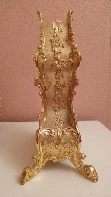 Fiqurlu, qızılı rəngdə bir kvars saat. Bu dekorativ saat, antik sənət əsərlərini xatırladan, detallı hazırlanmış insan fiqurları ilə bəzədilmişdir. Saatın yuxarı hissəsində klassik dizaynlı, ağ rən...