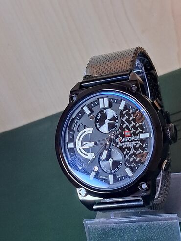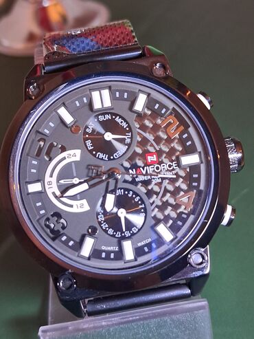 Brend loqosu və “Quartz Watch”/“Water Resistant 30M” yazıları siferblatda. Multifunksional göstəriciləri və möhkəm korpus-kəmər kombinasiyası ilə praktik və cazibədar seçimdir.