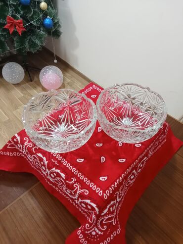 - Şəffaf, qalın şüşədən hazırlanmış dekorativ boşqab-kasa tipli qablar