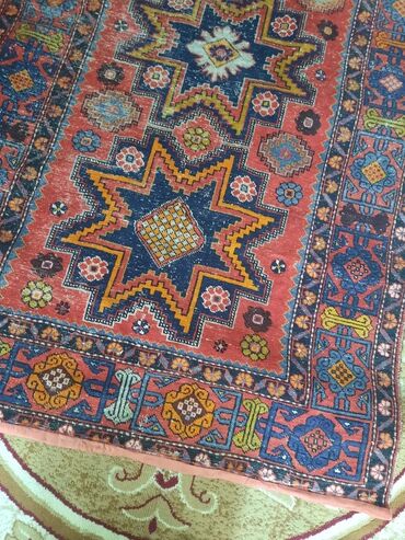 Qırmızı və ağ rənglərdə, mərkəzi hissəsində tünd naxışları olan əl işi xalça. Xalçanın kənarları rəngarəng gül və digər bəzək elementləri ilə haşiyələnib. Ev və ya ofis interyerinə etnik və klassik...