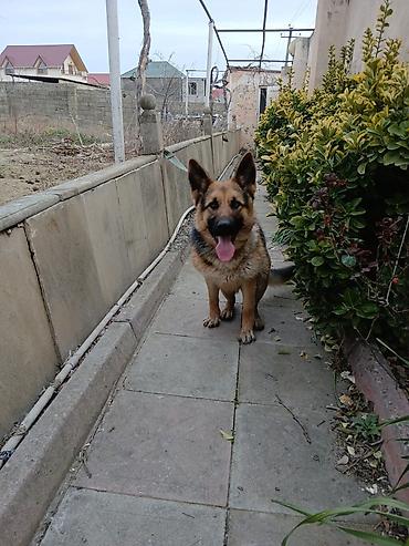 Alman çoban iti – erkək - Cins: Alman çoban iti (German Shepherd) - Rəng: qara-qonur - Quplaqlı qulaqlar, güclü skelet və möhkəm bədən quruluşu - Aktiv, diqqətli və çevik - Həyətyanı sahənin mühaf...