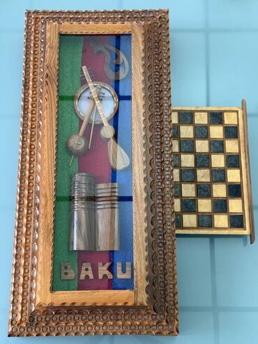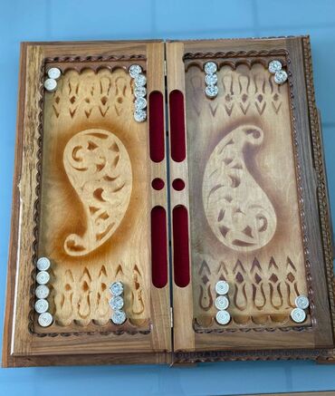 Əl işləri ilə hazırlanmış taxta nərd masası - Material: tam ağac (oyma detallı karkas və ayaqlar) - Funksiya: Qapağı açıldıqda iç hissəsi nərd taxtasına çevrilir; qapandıqda dekorativ çay/şamdan m...