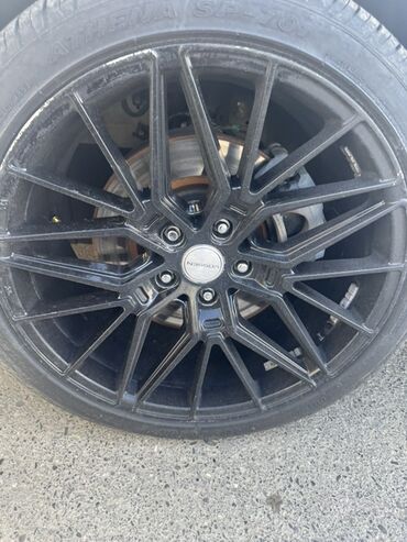 19-luqlı yüngül lehimli disklər və şinlər komplekti - Dizayn: çoxşaxəli (multi-spoke) sport üslub, gümüş rəng - Ölçü: təxminən 17" (şəkillərdə sedan üzərində) - Oturacaq/bolt: 5 boltlu naqış, univ...