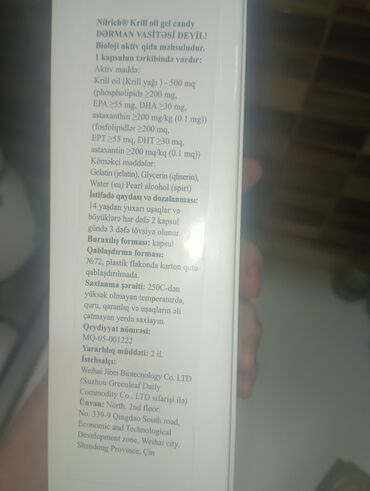 Göstəriş: Qutuda “Dərman vasitəsi deyil!” qeyd olunub.