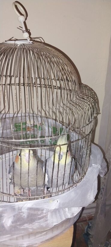 Məhsul: Qəfəslə birlikdə nimfa cütü (cockatiel) Təsvir: - Qızılı-sarı