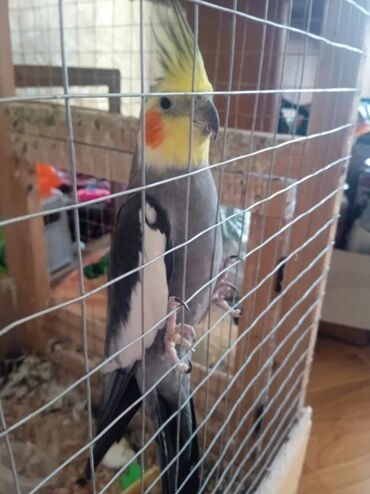 Məhsul: Nymph paraket (kakaduil) cütü və qəfəs Təsvir: - Növ: Nymph paraket (Cockatiel) - Rəng: Açıq sarı/krem tonlarında bədən, yanaqlarda narıncı “yanaq ləkəsi”, başda xarakterik çirok (toppuz) ...