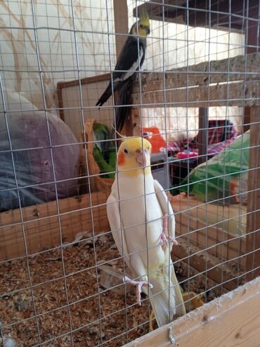 Bozlar bir aylıqdı qiyməti 30 azn sarı 5 aylıq erkək qiyməti 45azn əl dişləmirlər mehriban quşlardır - Rənglər: açıq sarı-lutino tonları narıncı yanaq ləkələri ilə, həmçinin boz-gövdəli, ağ-sarı na...