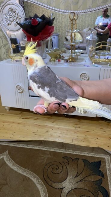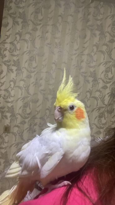 - Növ: Nimfa (cockatiel) – başda sarı çəlpək, yanaqlarda narıncı ləkələr.