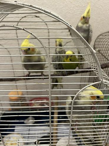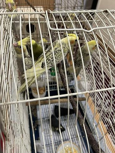 Bir cüt çex Lutino.6 aylıq cavan və sağlam quşlardı. Qəfəs və s hər şey birgə və ayrı satılır.(Qəfəs,taxtadan yığılmış əl işi stend,örtük,yem,mel,kömür,duz kristal,yuva,yemqabı,suqabı,ələk və s) T...