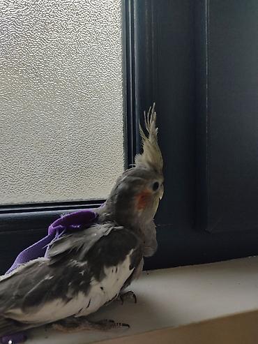 Növ: Nimfa tutuquşu (cockatiel) Rəng: Boz-ağ qarışıq, yanaqlarda