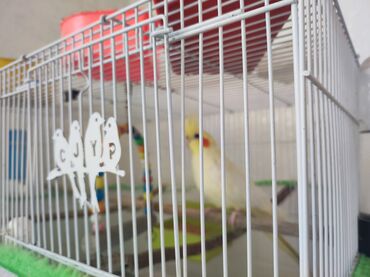 Məhsul: Ev quşları və qəfəs dəsti Təfərrüatlar: - Növ: Nimfa papuqayları (Cockatiel) – bir neçə fərqli rəng (boz, ağ-sarı başlı, ləkəli) - Qəfəsdə əlavə olaraq 1 ədəd dalğıç/budaqcıq növü dalmati...