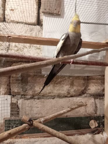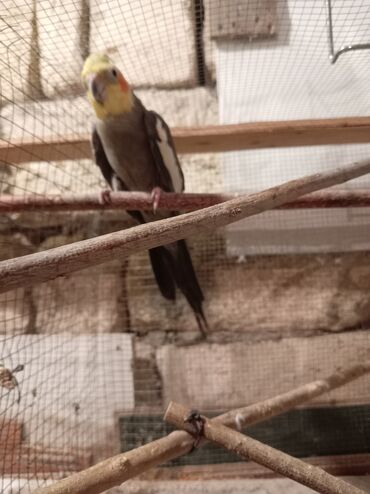 Növ: Korella papuqayı (cockatiel), sarı rəng 6 aylıgdır Erkek cinsidir Rəng xüsusiyyətləri: tam sarı lələklər, yanaqlarda narıncı “xal”lar, başda uca çətir Xarakter və davranış: - Əldə rahat dayanı...