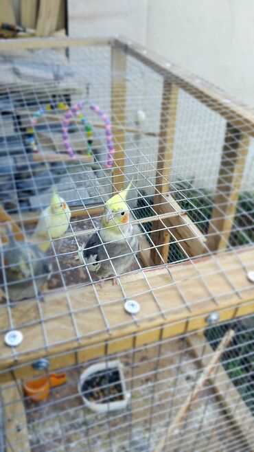 Məhsul: Nimfa (Cockatiel) tutuquşuları və ağac-metal konstruksiyalı geniş qəfəs