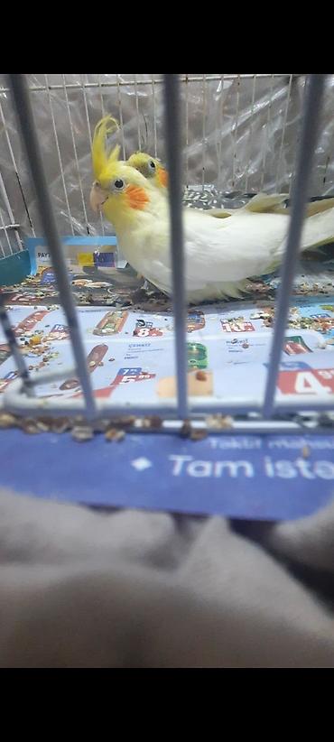 Nimfa (cockatiel) papağanı - Rəng: açıq sarı-ağ bədən, yanaqlarda