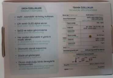- Ekran: OLED, SpO2, nəbz, nəbz forması və sütun qrafiki.