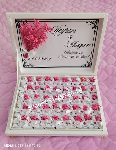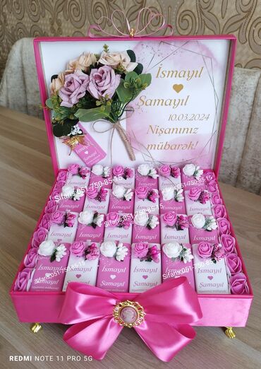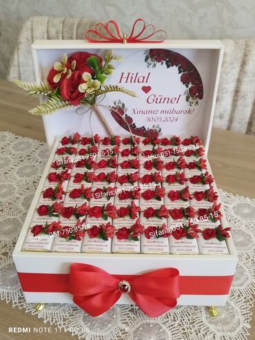 Heri konfet xoncasi sifarisle hazirlanir.Sifarisler en az 1-2 gun onceden goturulur.Sifaris ucun whatsapa yaza ve ya zeng ede bilersiniz.