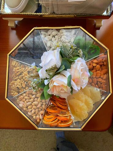Tecili‼️Endirim olundu‼️Xonça dəstləri, hamisi birlikde cəmi 1000 AZN‼️ 💐 Standart Dəst (12 ədəd): Paltar, ayaqqabı və çanta, Kosmetika, Şəkərbura, paxlava, badambura, Meyvə, Üzük, Şokolad, Güzgü,...
