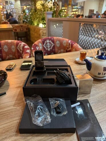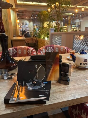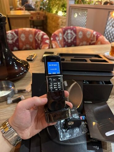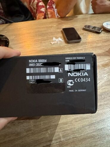 Nokia 8800 Sirocco - İtkin-inci qara korpus, sürüşdürülən (slider) dizayn - Ekranda model məlumatı: Nokia 8800 Sirocco, RM-165 - Metal korpus, şüşə ön hissə, işıqlanan klaviatura - Menyular rus di...