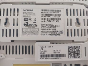 Nokia G-1425G-B GPON ONU/Router Xüsusiyyətlər: - Model: G-1425G-B (İstehsal ili: 2023) - GPON optik internet üçün ONU + Wi‑Fi router - Wi‑Fi 2.4 GHz (SSID-lər üzərində göstərilib), WPA/WPA2 şifrəl...