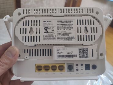 Nokia G-140W-C model nömrəli Wi-Fi router. Bu cihaz evdə və ya ofisdə etibarlı internet bağlantısı təmin etmək üçün nəzərdə tutulmuşdur. Cihazın arxasında bir neçə LAN portu, həmçinin WAN və PON po...