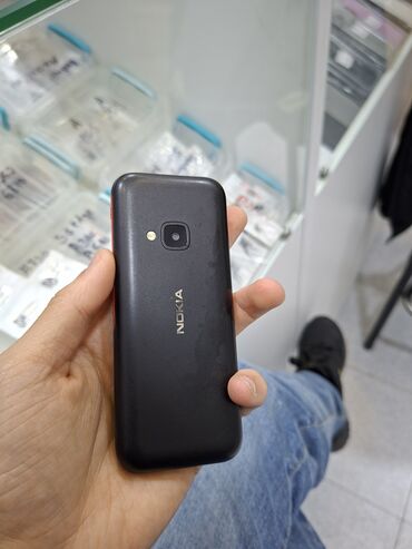 Nokia düyməli telefon - Klassik monoblok dizayn, qara korpus - Fiziki 12 düyməli klaviatura və mərkəzi naviqasiya düyməsi - Ön tərəfdə Nokia loqosu, arxada kamera və LED fənər/işıq - Arxa qapaqda ...