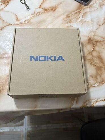 - Nokia marka ağ Wi‑Fi/router cihazı. Üzərində “NOKIA” loqosu, ön paneldə bir neçə LAN portu və göstərici işıqları var. Qidalandırıcı (adapter) və şəbəkə kabeli ilə birlikdə. - Otaq üçün TV antenas...
