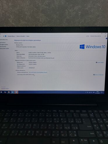 - Noutbuk: Ekran görüntüsünə əsasən Windows 10 Pro quraşdırılıb. Prosessor: Intel Core i3-7020U, 2.30 GHz. Operativ yaddaş: 4 GB (istifadə oluna bilən 3.87 GB). Sistem: 64-bit əməliyyat sistemi, x64 prosessor. Klaviatura üzərində kiril və latın simvolları işarəlidir.