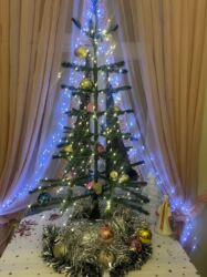 Yığıla bilən süni Yeni il şam ağacı Toka taxanda fırlanır özünün üzərində işığı var 1 dəfə qurulub yenidəm seçilmir qiymətdə endrim olacaq - Material: sıx plastik iynələr, metal karkas - Rəng: tü...